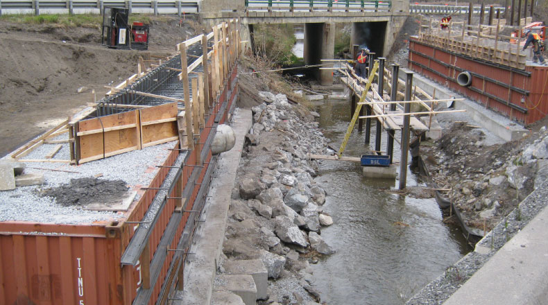 Reconstruction of a reinforced concrete portico over St-Jean-Baptiste Creek