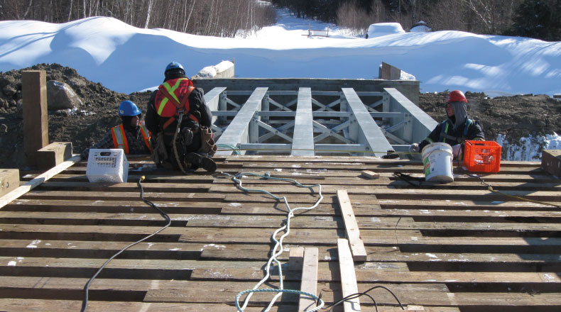 Design and construction of a multifunctional suspended bridge over the Mistassini River.
