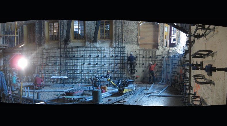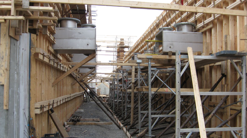 Demolition and reconstruction of a mechanical tunnel linking buildings.