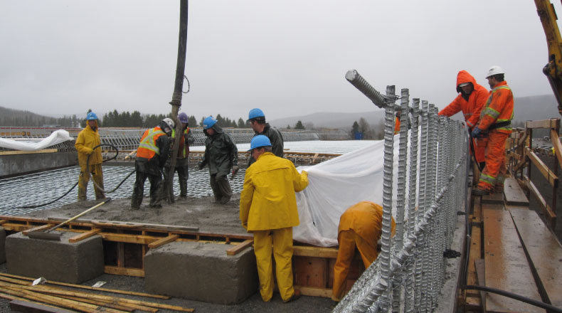 Coffrage, bétonnage et armature de l’usine de traitement des eaux de drainage de la Mine de Fer du Lac Bloom.